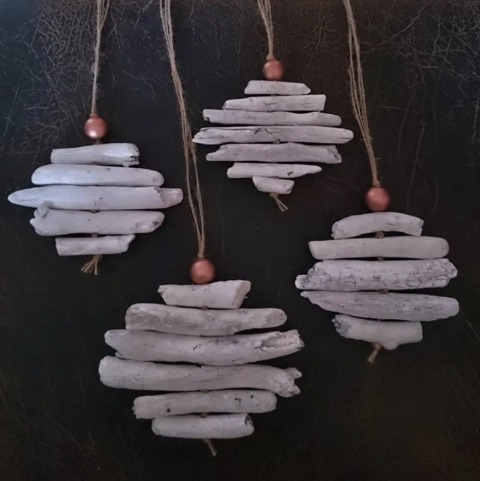 aus Treibholz gebundene rustikale Weihnachtskugeln im Shabby Chic Look,
