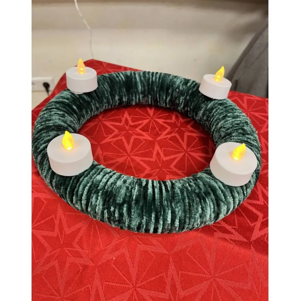 Achtung – Die Kerzen sind kein Bestandteil des Angebots. Nur ein Wollkranz geschmückt mit roten Schleifen und Deko