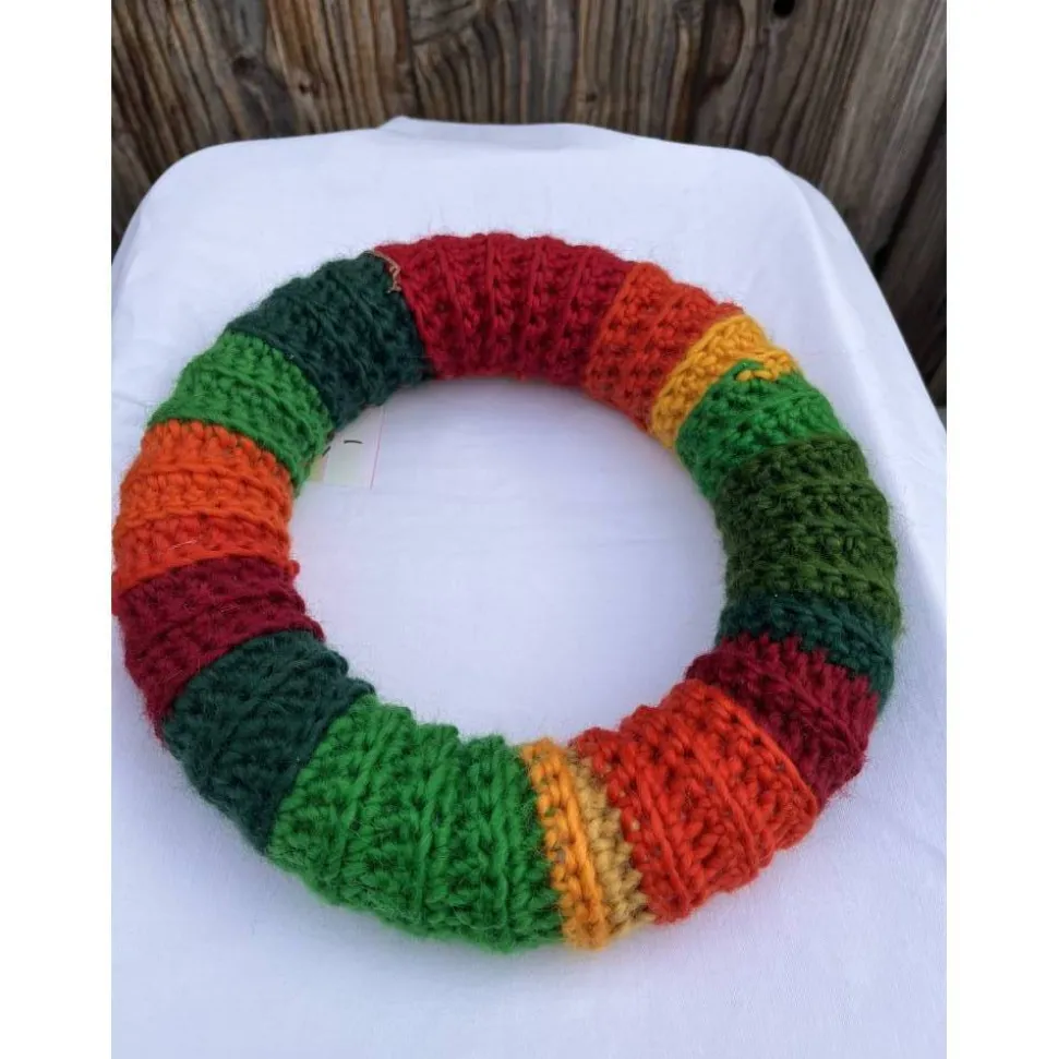 Handgehäkelte Wollkränze sind ideal für das Dekorieren – Ob zum Aufhängen an der Tür oder an der Wand, zum Hinlegen als Tischdeko oder Kerzenhalter – es verleiht deinem Zuhause eine gemütliche und warme Atmosphäre.