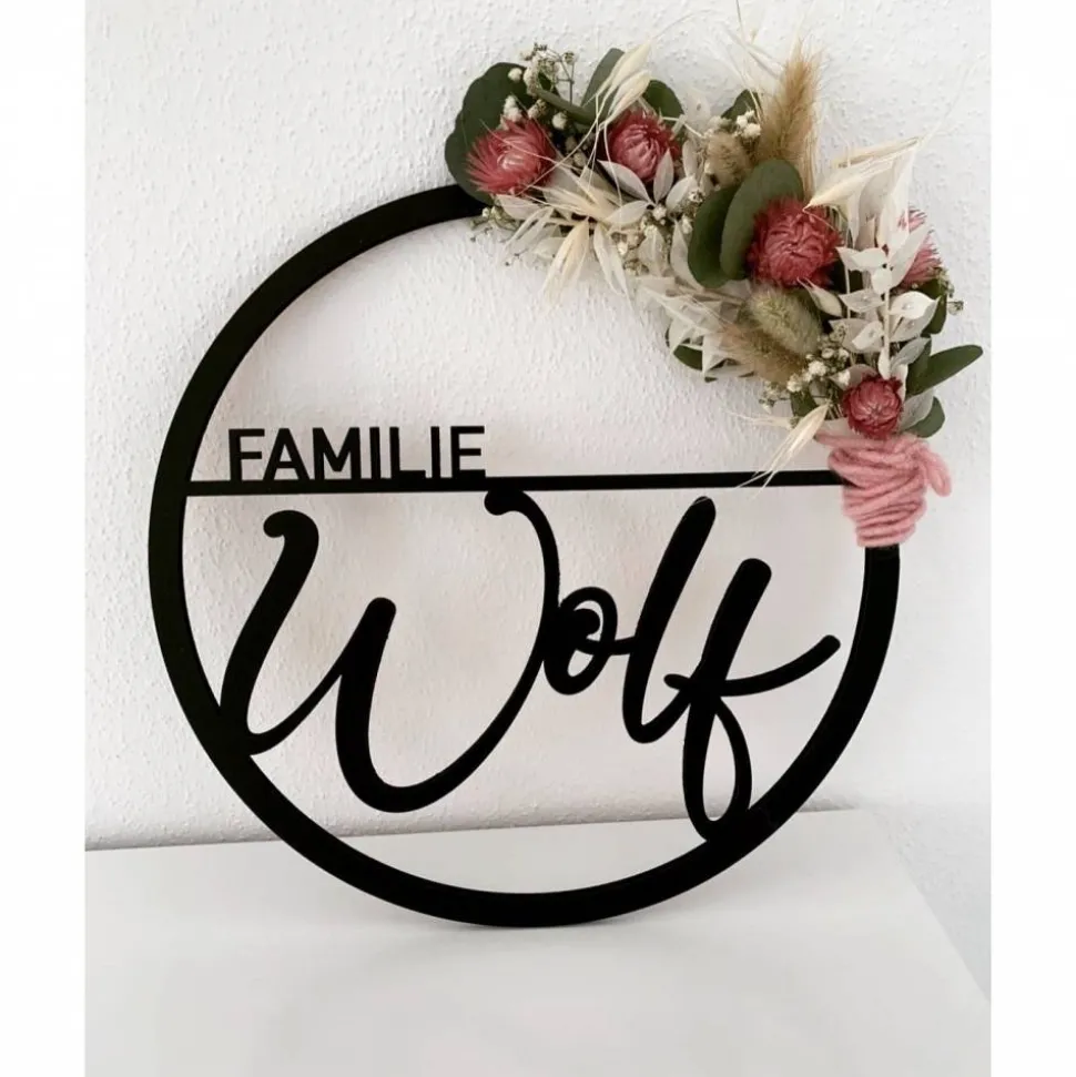 Befestigen lässt sich der Dekoring ganz einfach mit einem Band deiner Wahl (nicht im Lieferumfang enthalten) mit einem Nagel an der Wand oder der Türe.