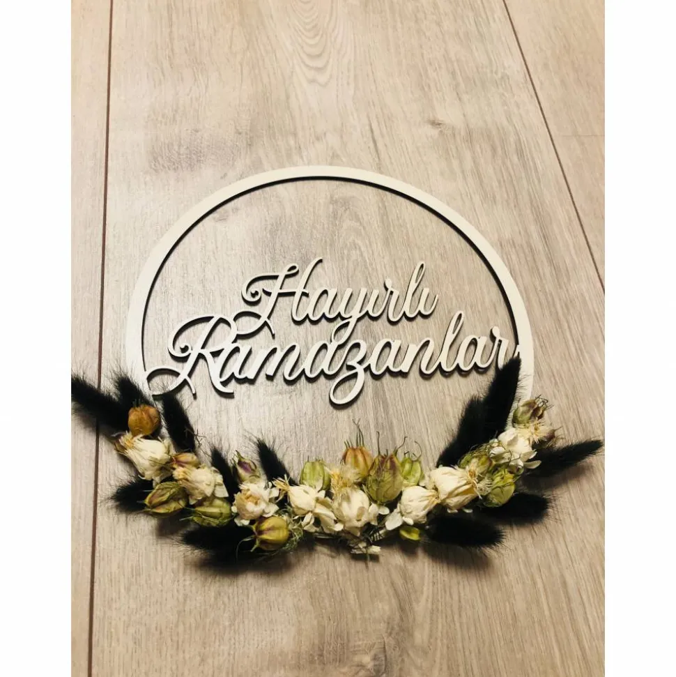 Mit unserem dekorativen Holz Hoop „Haiyrli Ramazanlar“ kannst du deine Tür oder auch die Wand passend zum Fest schmücken. Toll sieht er übrigens auch mit Trockenblumen oder Makramee (siehe Produktbilder) dekoriert aus.