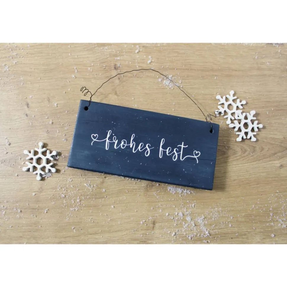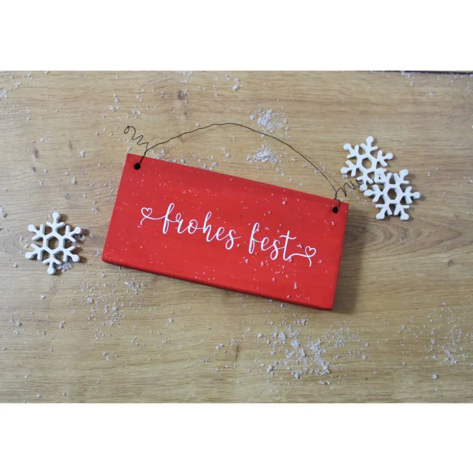 Die Schilder werden geschliffen, gebohrt, mit einer sanft-matten Kreidefarbe gestrichen, mit einer Vinylfolie beplottet und anschließend gewachst. Für die Aufhängung ist ein Draht angebracht. Ich empfehle dein Schild nur innen zu verwenden, wenn du lange Freude daran haben möchtest, da die Farben nicht wasserabweisend sind.