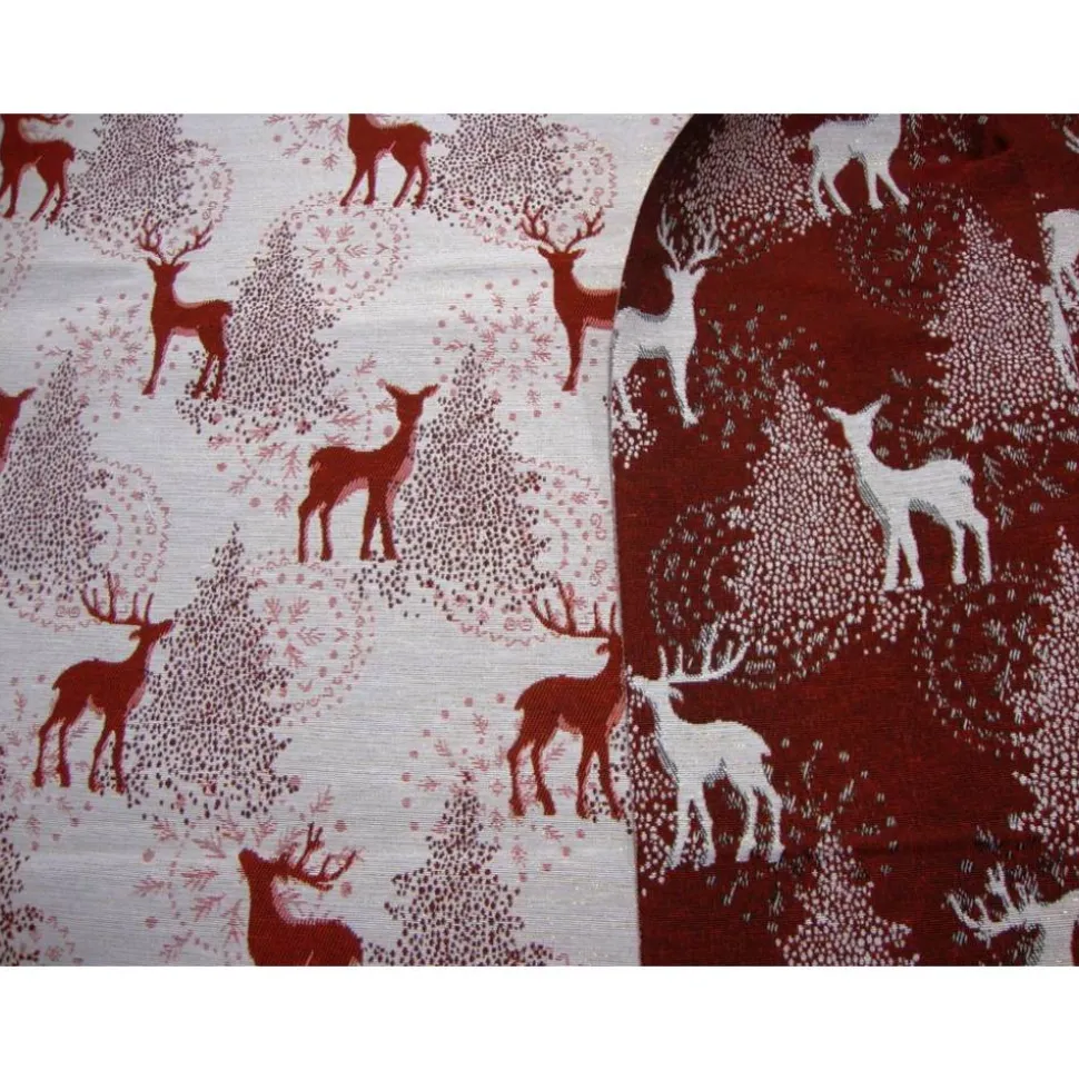 Verleihe deiner Weihnachtsdeko einen einzigartigen Look mit dem exklusiven Dekostoff-Weihnachten-Jacquard in natur mit rotem Reh und Hirsch im Wald.