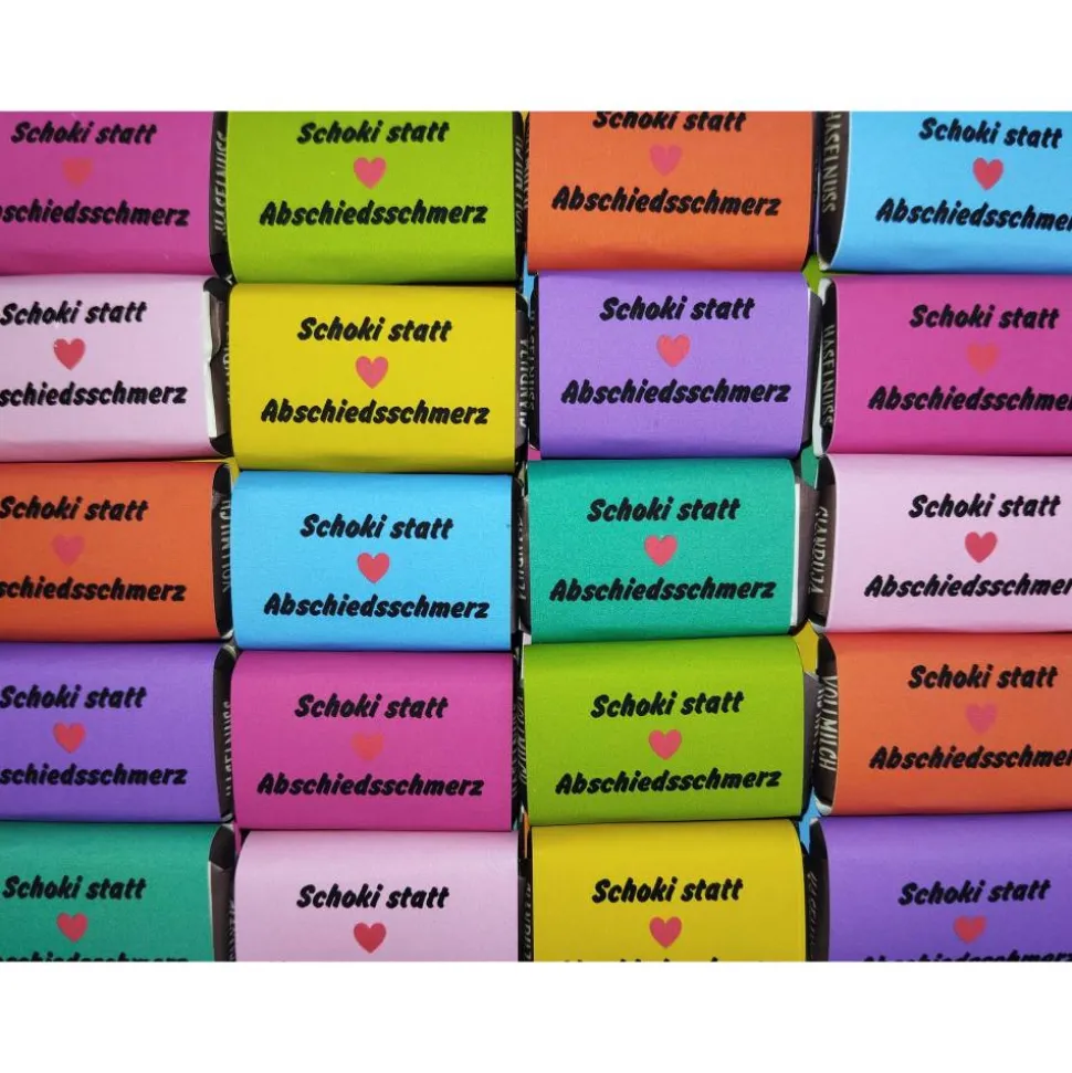 Schokoladentäfelchen mit einer Banderole umlegt, fertig bedruckt nach ihren Wünschen und Angaben –