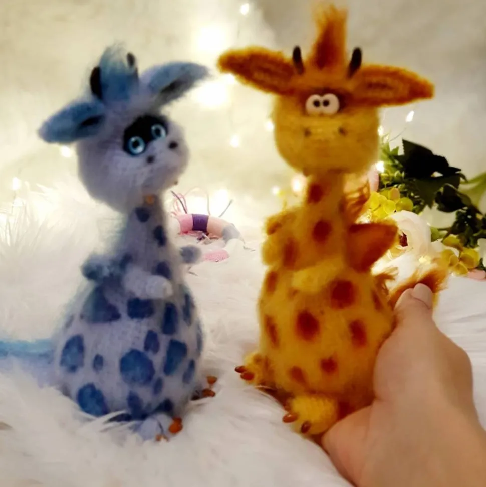 Drachen wurden aus hochwertigem Angora und Mohair Garn gehäkelt.