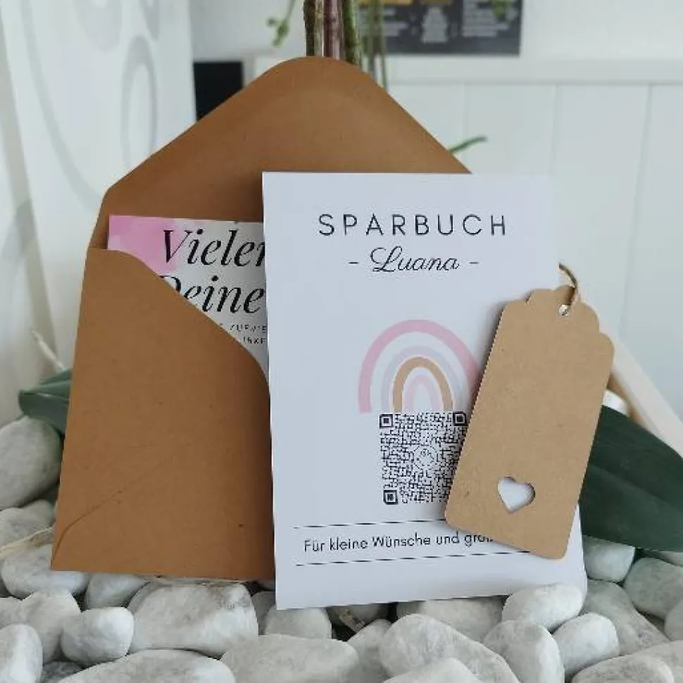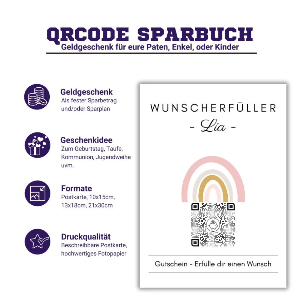 Digitale Spardose | Personalisiertes Geldgeschenk | QrCode Geschenkkarte | Regenbogen