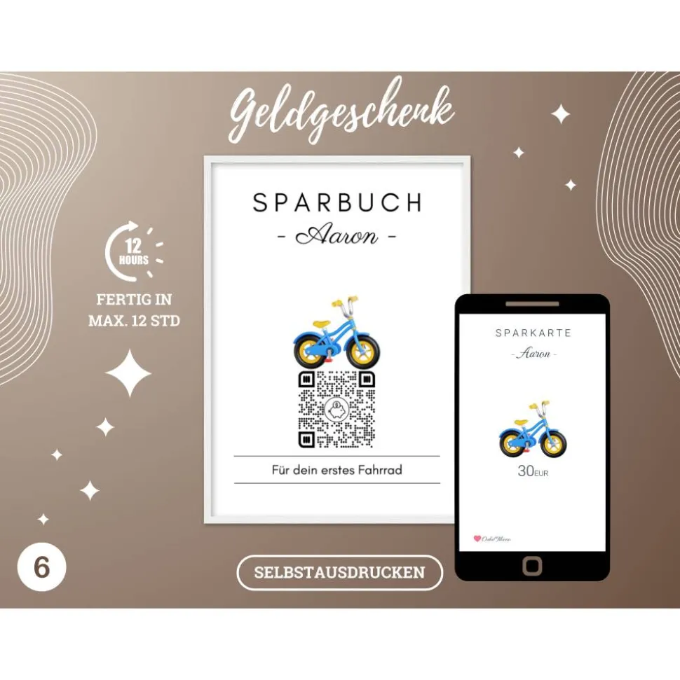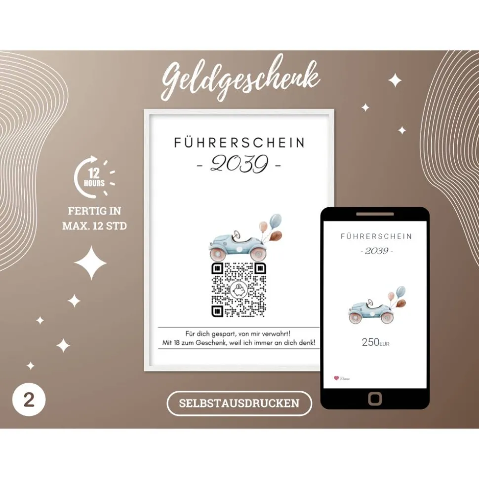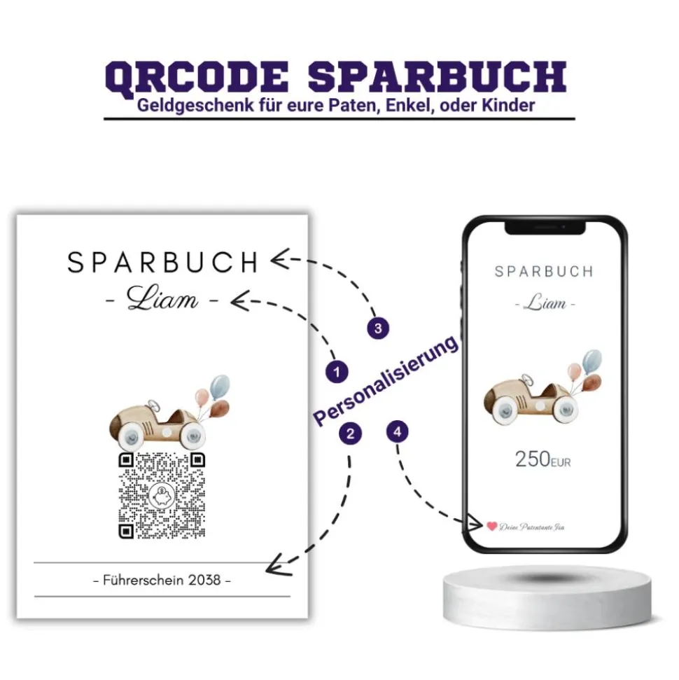 Digitale Spardose | Personalisiertes QrCode Geldgeschenk | Führerschein Auto Motorrad | Download