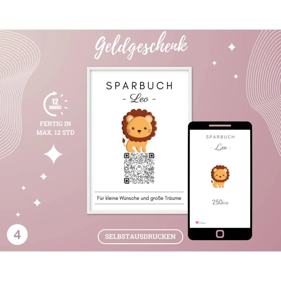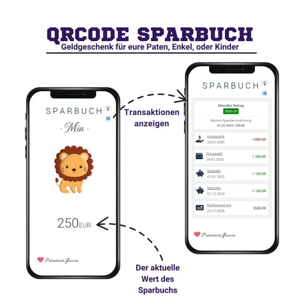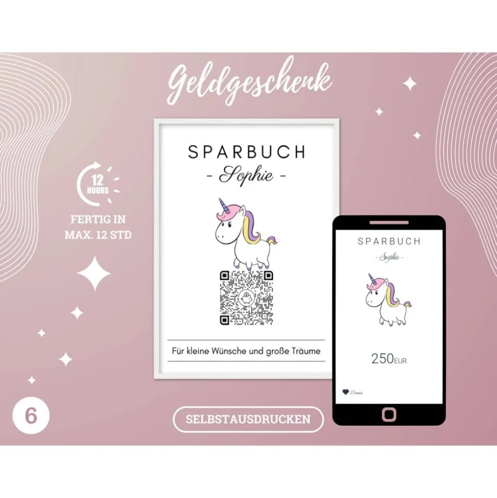 Digitales QrCode Sparbuch | Personalisiertes Geldgeschenk | Download | Verschiedene Motive
