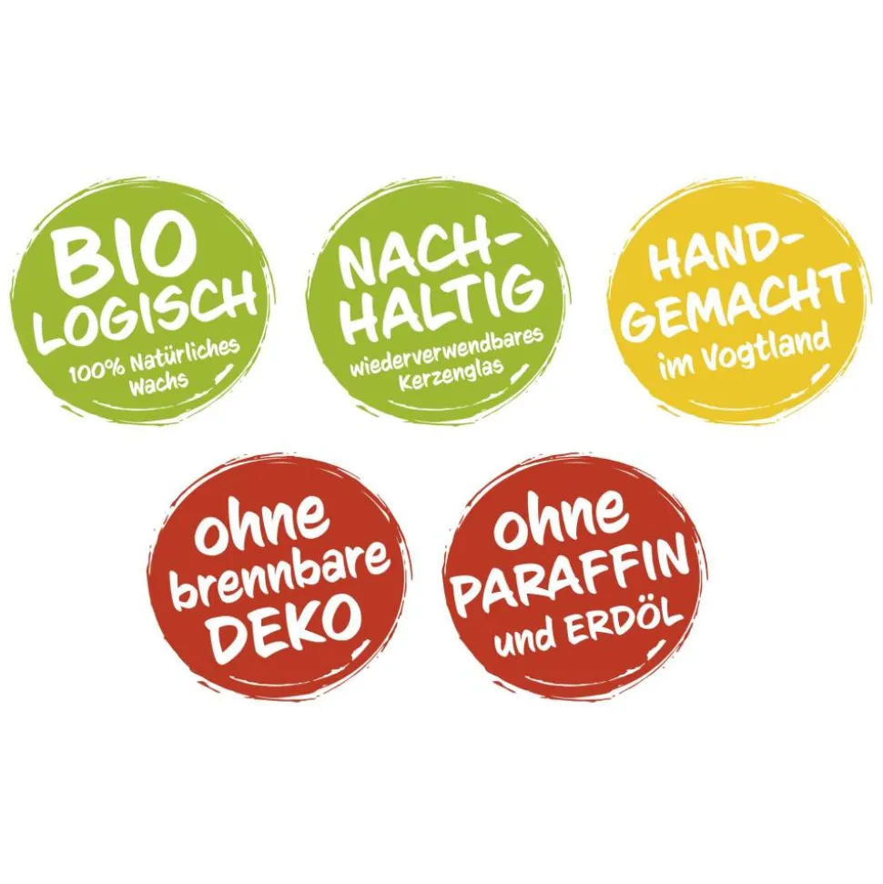 Nachhaltiges Produkt: Die Gläser können wiederverwendet werden. Hierzu bieten wir Nachfüllsets mit Wachs und Kerzendochten an.