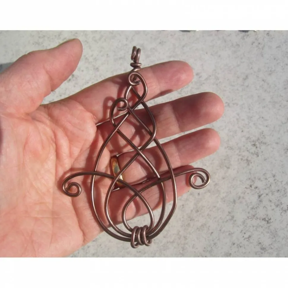 Hier habe ich ein Osterei – mal in 2D und natürlich aus dem Werkstoff (Alu-)Draht – gefertigt. Ob das Osterei den Osterstrauß ziert oder als Amulett an einem Baumwollband schmückenderweise um den Hals getragen werden soll, bleibt dabei der künftigen Eigentümerin oder dem künftigen Eigentümer überlassen. Ebenso, ob sie oder er in den beiden seitlichen Auslegern Eierstöcke sehen will oder nicht…. 😉