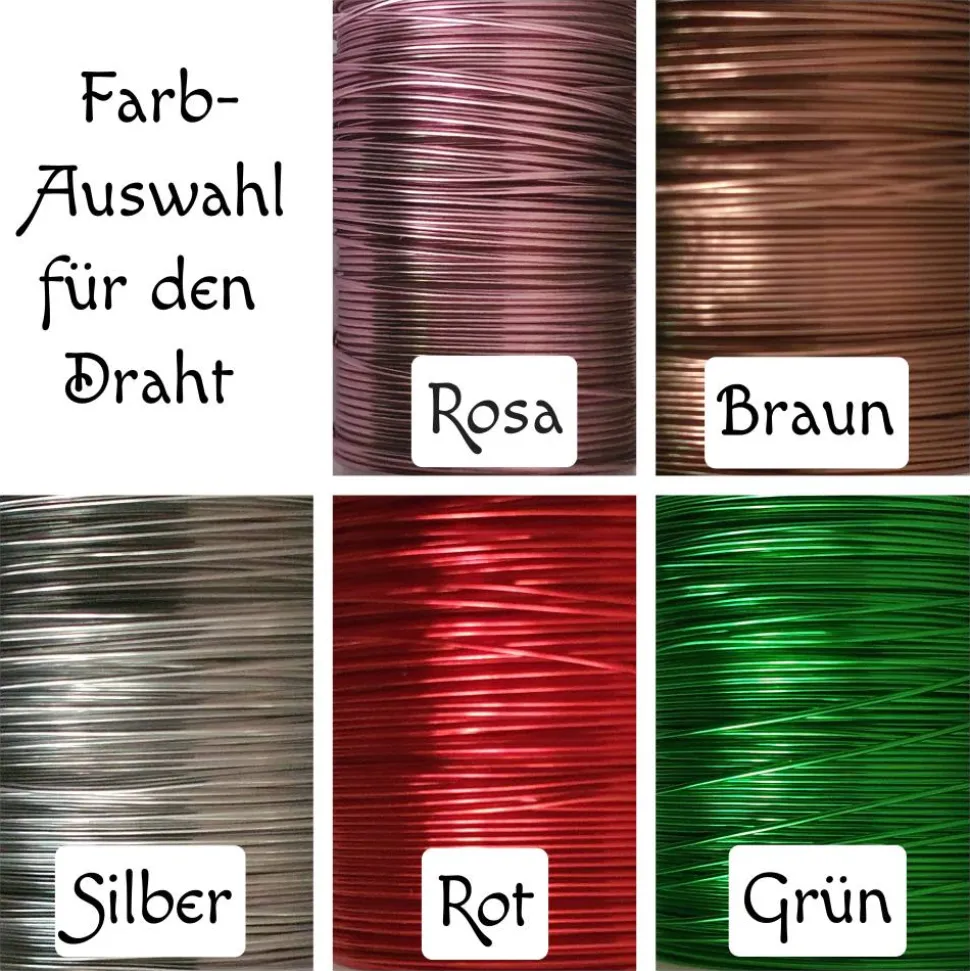 Zur Anfertigung werden u. A. auch Schmuckzangen verwendet, daher können leichte Druckspuren bei genaueren Hinsehen zu erkennen sein. Dies stellt keinen Mangel da. Hieran können Sie erkennen das dieses Schmuckstück und Bäume Handarbeit sind. Des weiteren beachten Sie Bitte das Aluminium- und Kupferdraht biegsam sind. Und stellt daher keinen Fehler dar. Sollte sich Ihr Schmuckstück beim tragen mal verbiegen, können Sie diesen vorsichtig in seine Ursprüngliche Form biegen. Das gilt auch für meine Bäume.