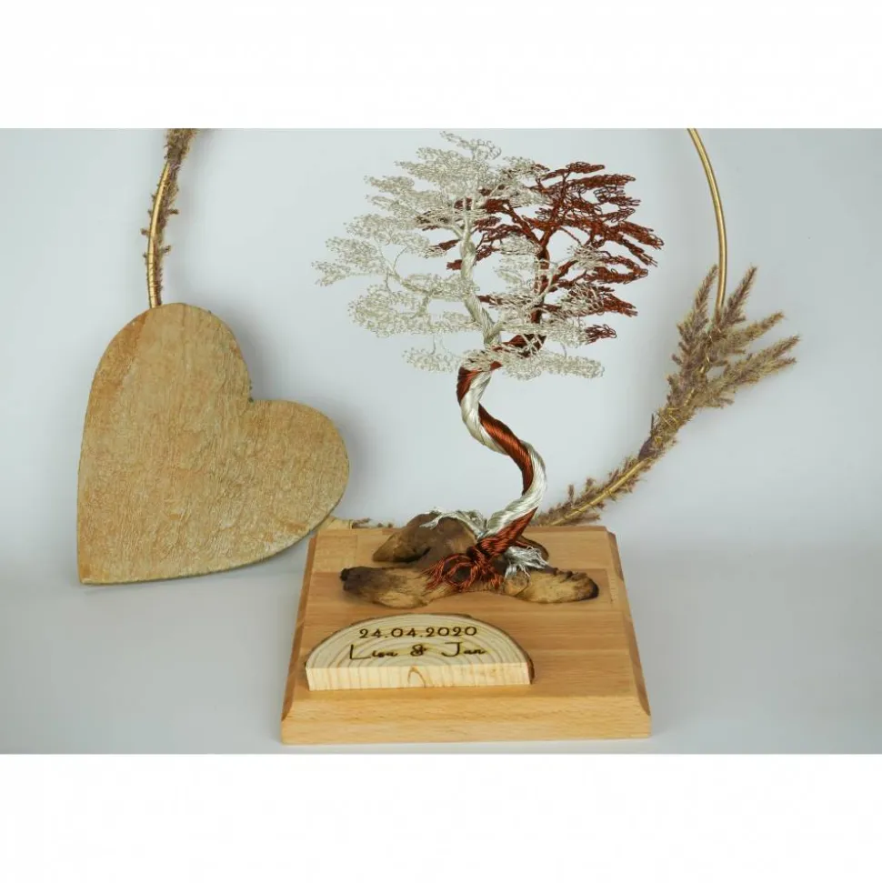 Egal ob zur Hochzeit, den gemeinsamen Jahrestag oder einfach nur als Zeichen der Freundschaft, mit diesem symbolstarken Bonsai aus Draht sorgst du für ein perfektes Geschenk.