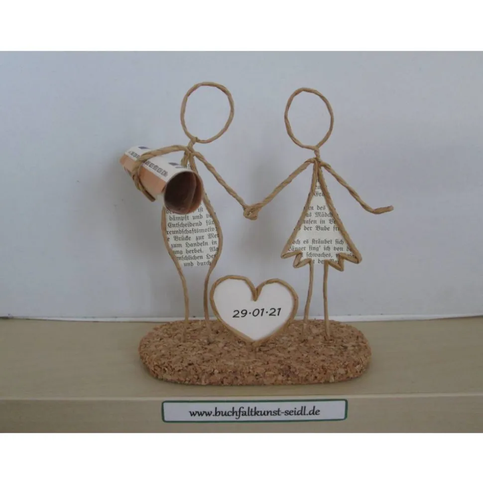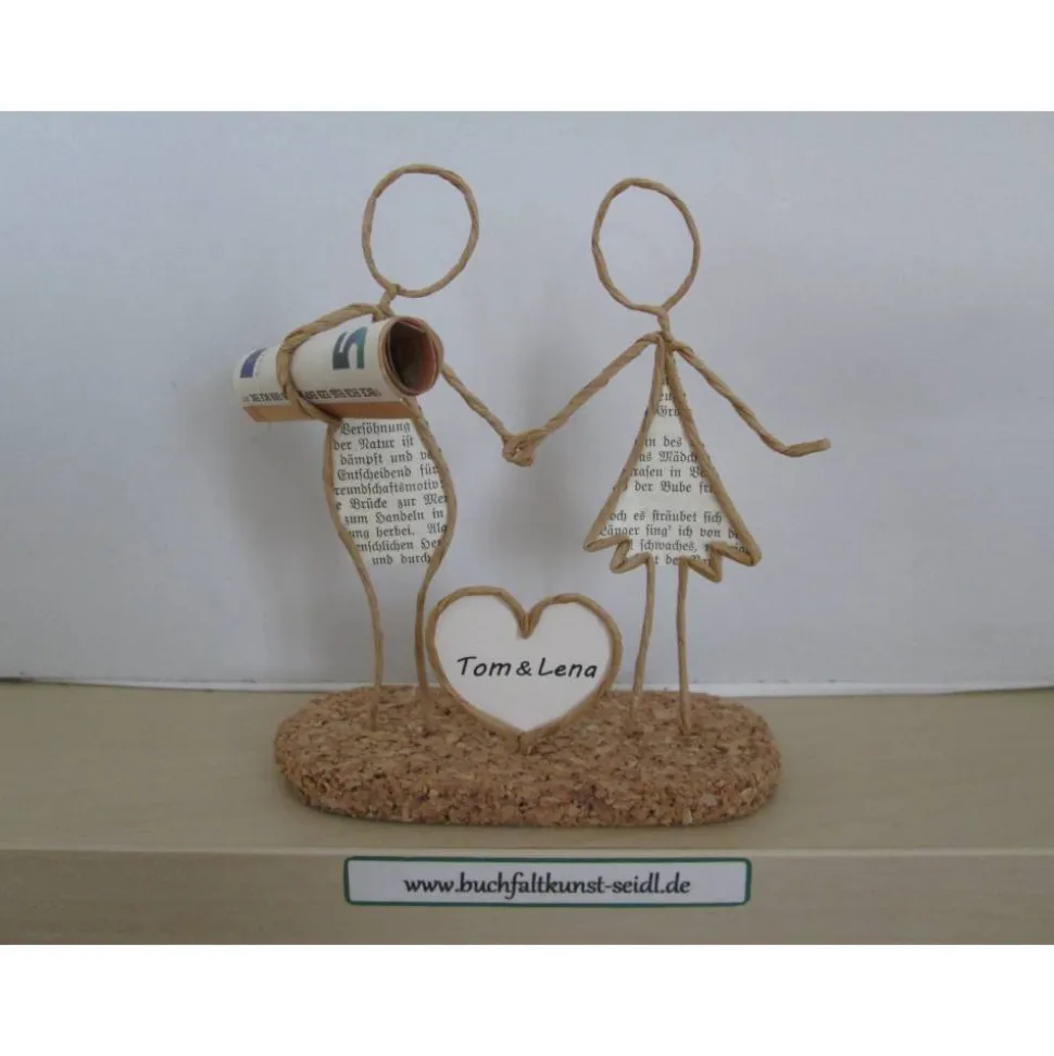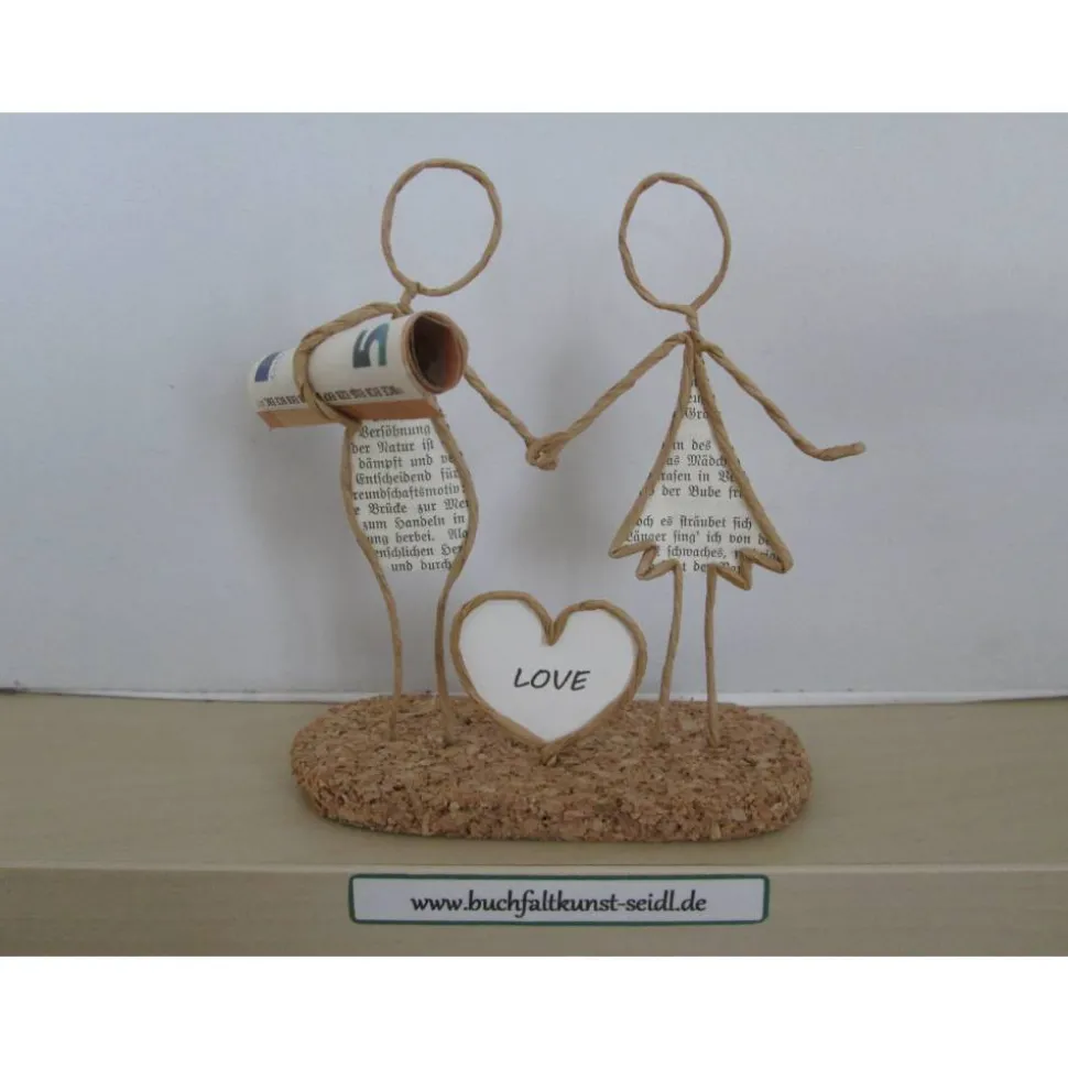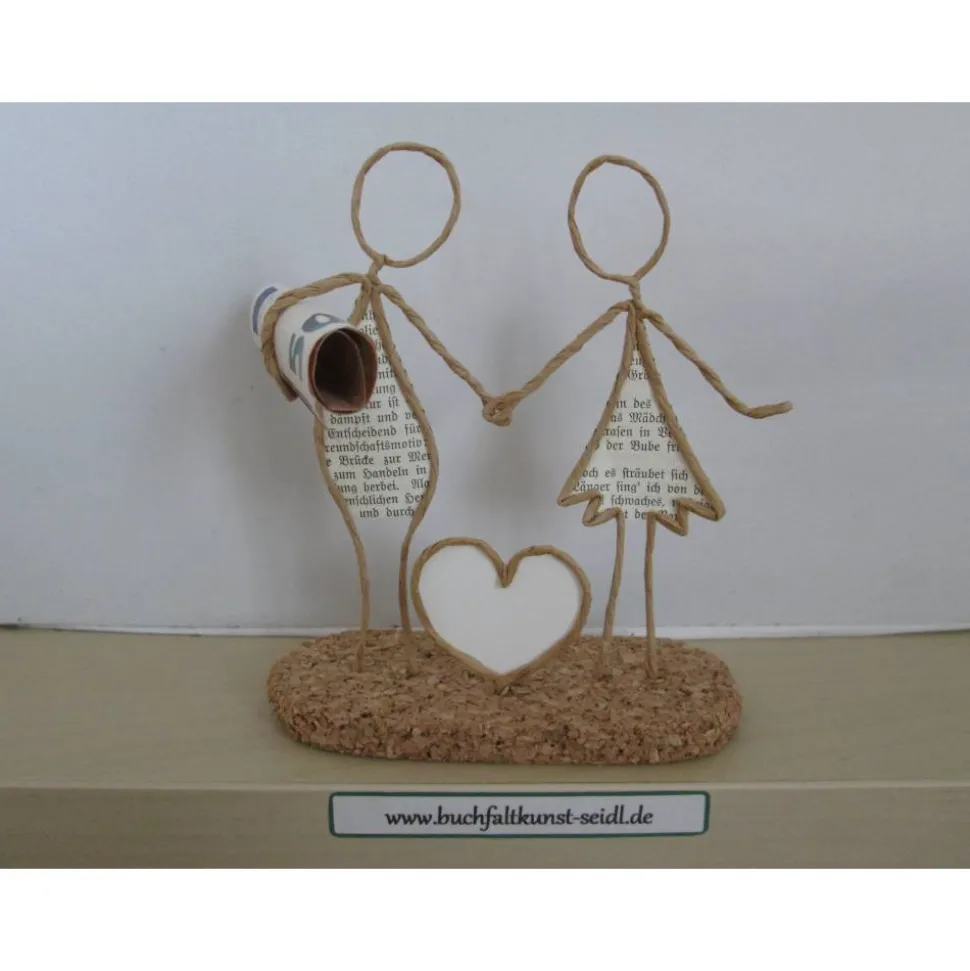 Meine zahlreichen, verschiedenen Drahtfiguren sind ein süßes, kleines Geschenk, z.B. für Hochzeit, Valentinstag, Geburtstag, Jahrestag, Weihnachten etc. oder eine hübsche Dekoration im eigenen Zuhause. Jede Figur fertige ich in liebevoller Handarbeit aus Papierdraht, Buchseiten mit altdeutscher Schrift und Korkplatten speziell für Sie an. Einige Figuren sind individualisierbar und personalisierbar, indem ich z.B. in die Schilder oder Herzen Ihre Wunsch-Namen oder -Wörter einfüge.