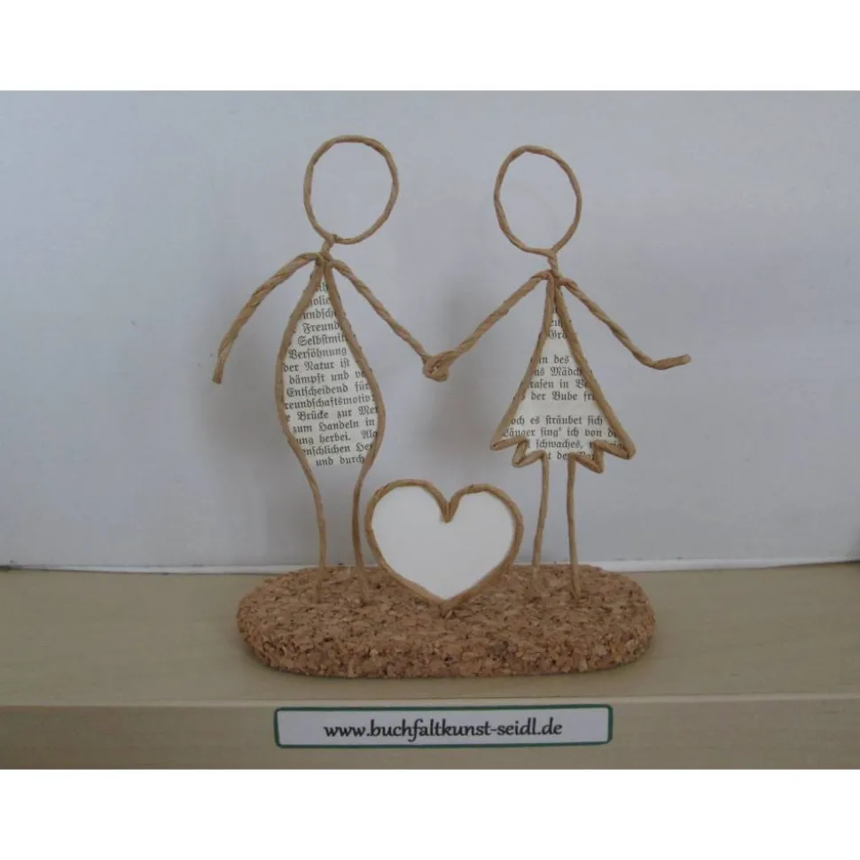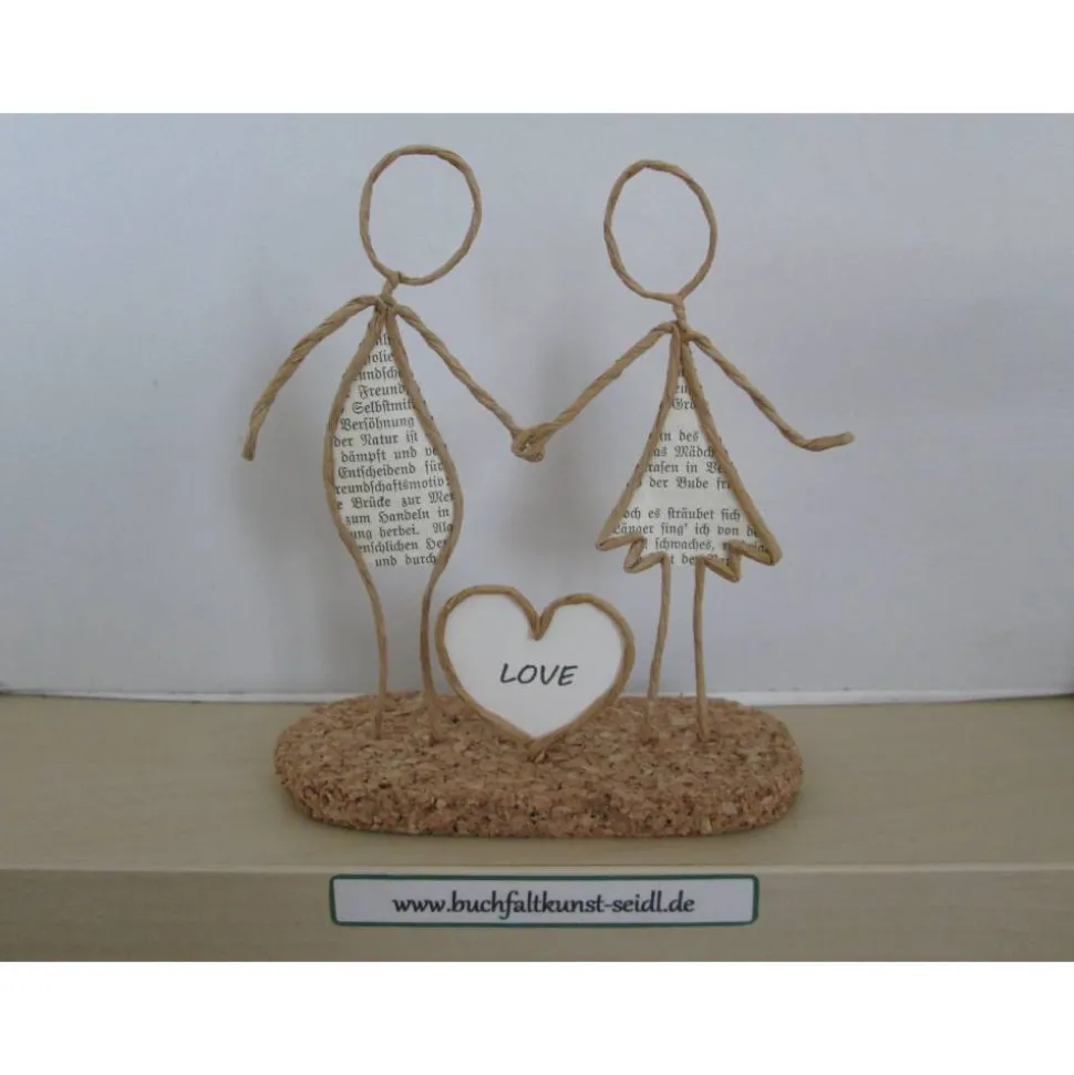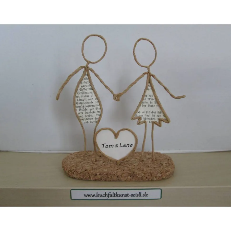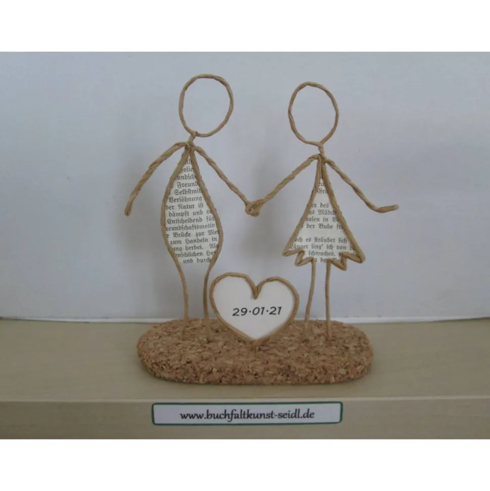 Meine zahlreichen, verschiedenen Drahtfiguren sind ein süßes, kleines Geschenk, z.B. für Hochzeit, Valentinstag, Geburtstag, Jahrestag, Weihnachten etc. oder eine hübsche Dekoration im eigenen Zuhause. Jede Figur fertige ich in liebevoller Handarbeit aus Papierdraht, Buchseiten mit altdeutscher Schrift und Korkplatten speziell für Sie an. Einige Figuren sind individualisierbar und personalisierbar, indem ich z.B. in die Schilder oder Herzen Ihre Wunsch-Namen oder -Wörter einfüge.
