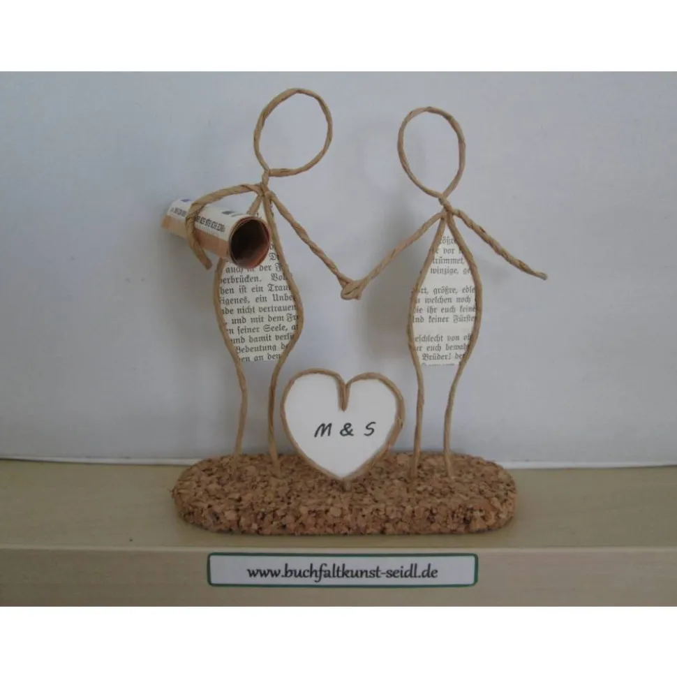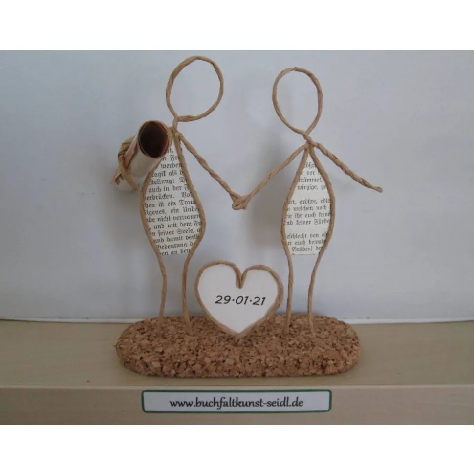 Meine zahlreichen, verschiedenen Drahtfiguren sind ein süßes, kleines Geschenk, z.B. für Hochzeit, Valentinstag, Geburtstag, Jahrestag, Weihnachten etc. oder eine hübsche Dekoration im eigenen Zuhause. Jede Figur fertige ich in liebevoller Handarbeit aus Papierdraht, Buchseiten mit altdeutscher Schrift und Korkplatten speziell für Sie an. Einige Figuren sind individualisierbar und personalisierbar, indem ich z.B. in die Schilder oder Herzen Ihre Wunsch-Namen oder -Wörter einfüge.
