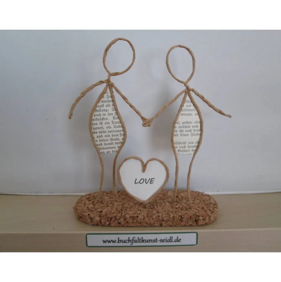 Meine zahlreichen, verschiedenen Drahtfiguren sind ein süßes, kleines Geschenk, z.B. für Hochzeit, Valentinstag, Geburtstag, Jahrestag, Weihnachten etc. oder eine hübsche Dekoration im eigenen Zuhause. Jede Figur fertige ich in liebevoller Handarbeit aus Papierdraht, Buchseiten mit altdeutscher Schrift und Korkplatten speziell für Sie an. Einige Figuren sind individualisierbar und personalisierbar, indem ich z.B. in die Schilder oder Herzen Ihre Wunsch-Namen oder -Wörter einfüge.