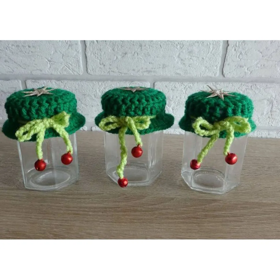 Material: Wolle (Polyacryl), Glas mit Schraubverschluss (gekauft)