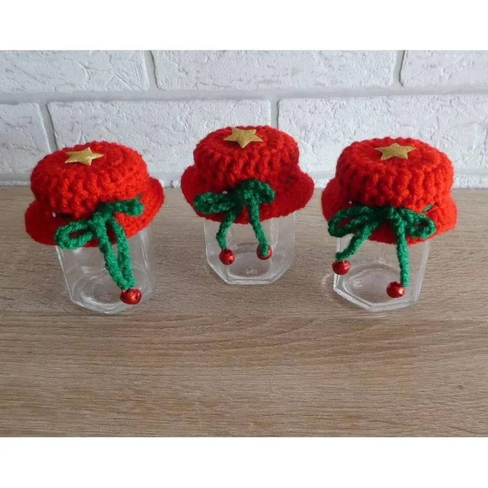Material: Wolle (Polyacryl), Glas mit Schraubverschluss (gekauft)