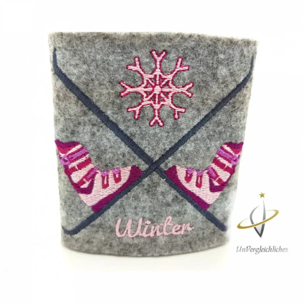 ♥ Die Flachmannhülle ist aus schadstoffarmem Polyesterfilz genäht und aufwändig bestickt. ♥
