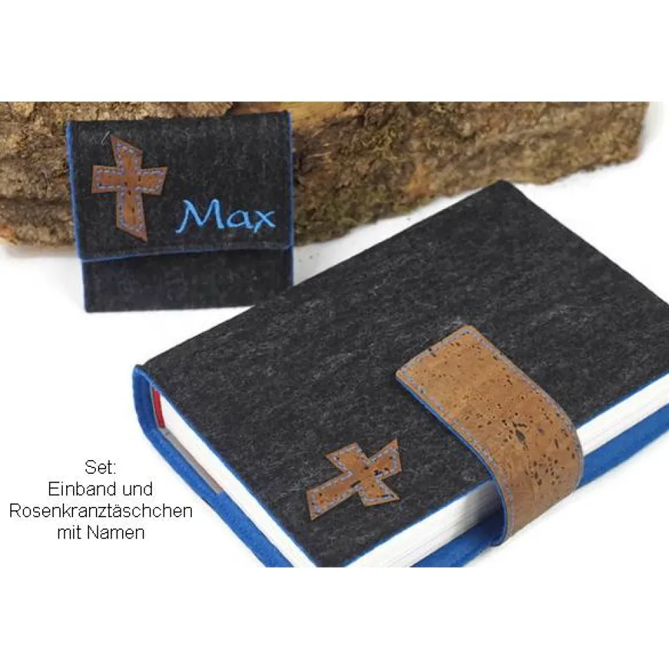 SET-Option: Einband mit farblich passendem Rosenkranztäschchen (Größe Täschchen: 8,5 x 8,5cm). Name auch auf Täschchen optional möglich.