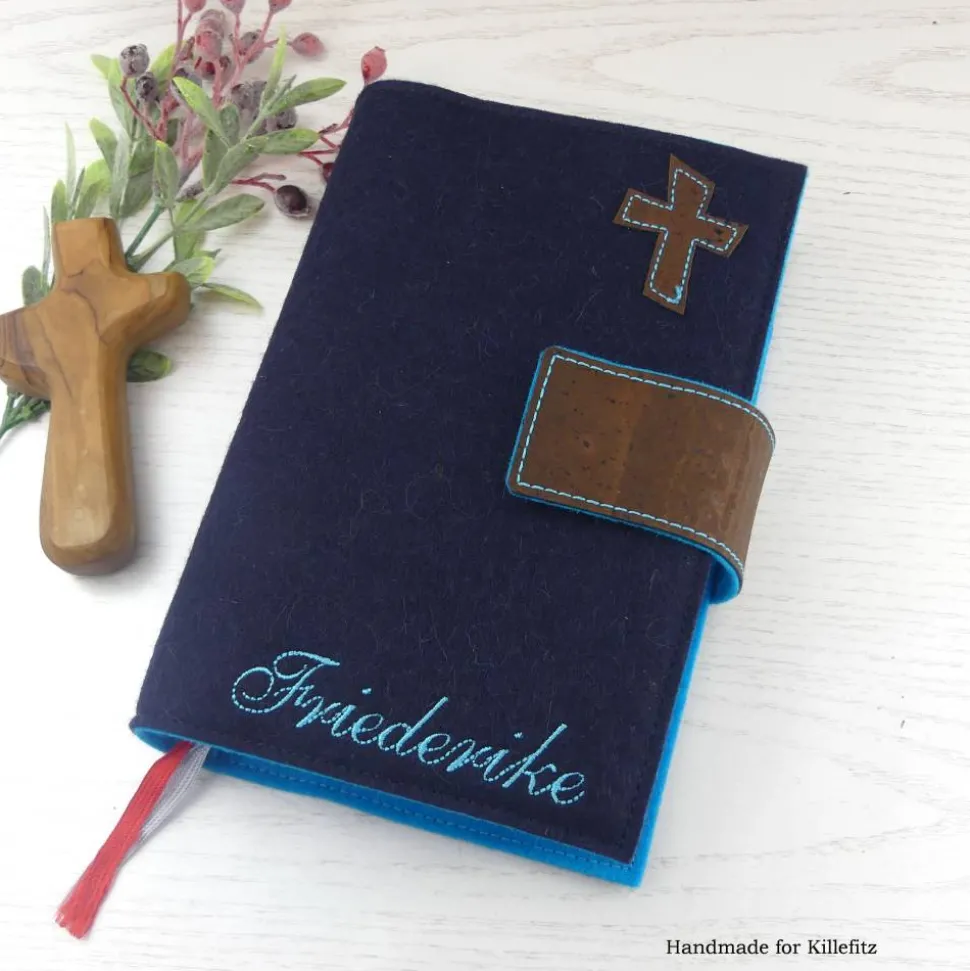 Dieser Einband ist ein tolles Geschenk zur Kommunion, Firmung oder Konfirmation. Bestickt mit dem Namen des Kindes ein absolutes Unikat.