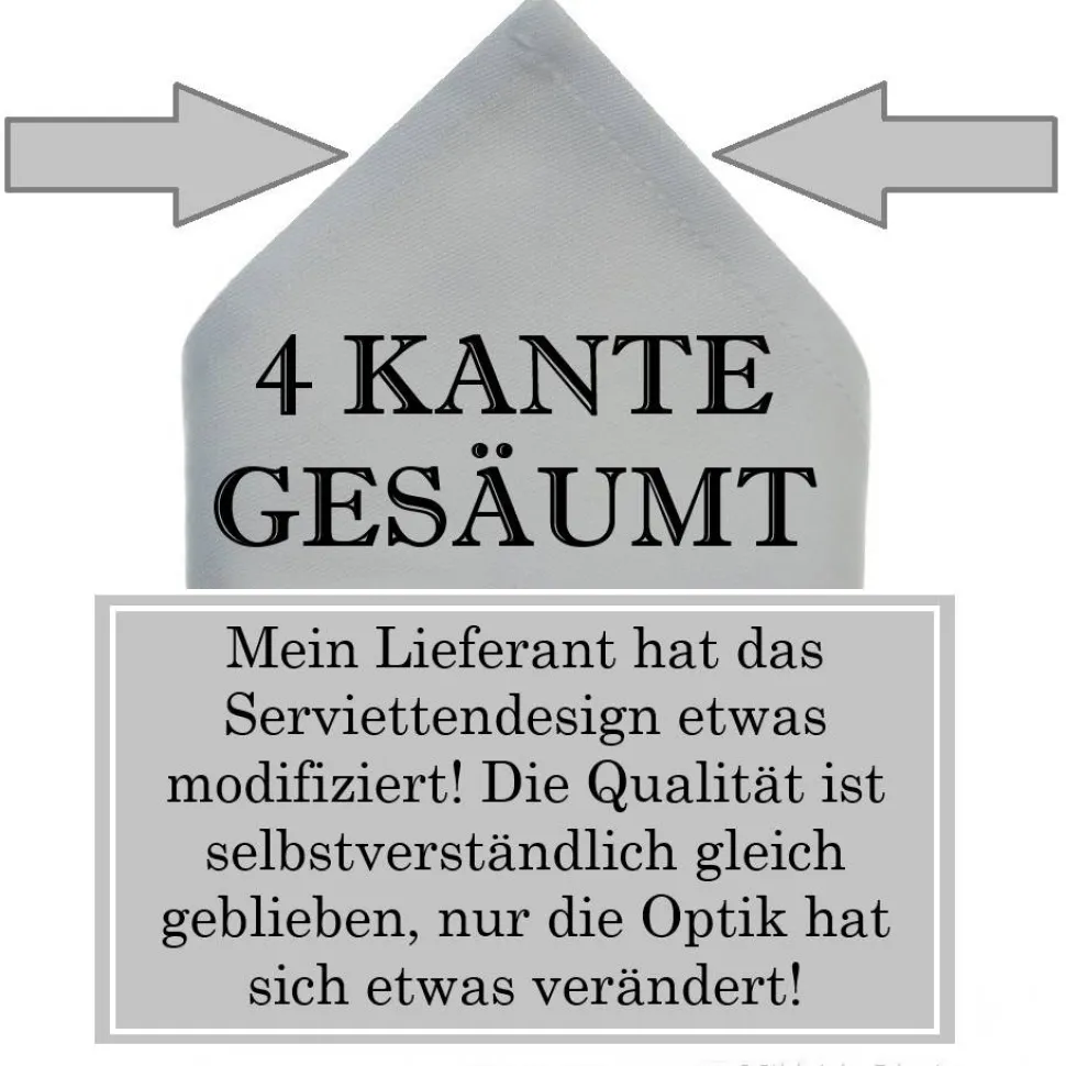Sie können die Servietten trotz Stickerei bis 95°C waschen und mit Dampf oder Sprühstärke bügeln. Im Trockner Schonstufe 1, bügeln auf Stufe 3, Kann chemisch gereinigt werden!