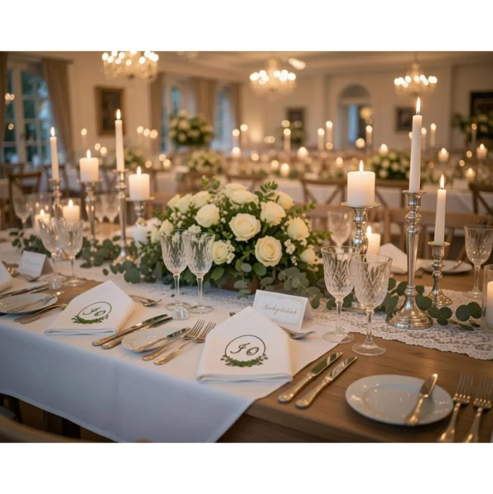 „Bestickten Stoffservietten sind ein echtes 3-in-1-Talent: Sie dienen als edle Tischdekoration, ersetzen die klassische Platzkarte und sind zugleich ein persönliches Gastgeschenk, das ihre Gäste als Erinnerung mit nach Hause nehmen dürfen.“