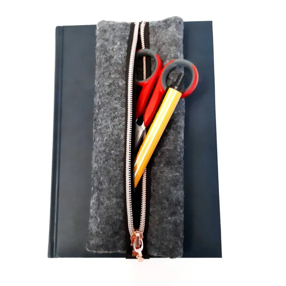Oftmals gibt es für Notizbücher, Kalender, Rätselbücher, Tagebücher, Tablet und Kladden keine Gummilasche für den Kugelschreiber oder man benötigt einfach mehr Stifte und ein Lineal, Schere, Marker usw. Ein kleines Mäppchen am Notizbuch ist da ganz praktisch. Weiter kann das Mäppchen auch als Lesezeichen verwendet werden.