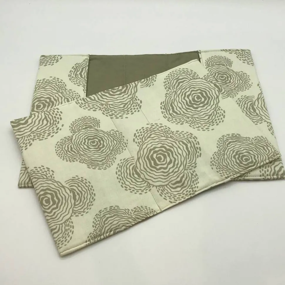 Hier ist der Einband in creme mit Muster, der Innenstoff ist oliv.