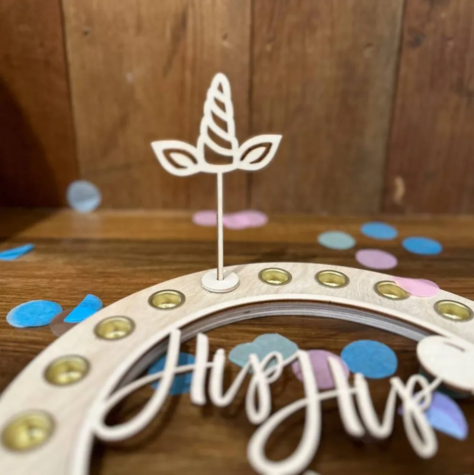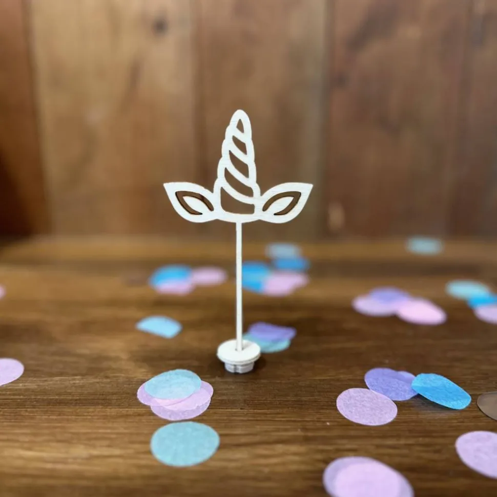 Ob als Geschenk oder für deine eigene Dekoration – mit diesem Einhorn-Stecker aus Birkensperrholz bringst du magische Details in deine Feier und sorgst für leuchtende Augen.