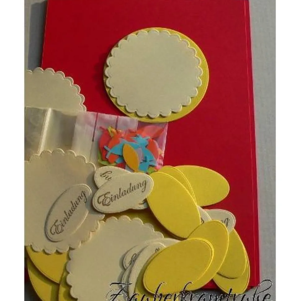 Gerne kann auch eine Spezialanfertigung angefragt werden, z.B. ist es möglich, beim 20er Set einige Karten als Menükarte zu basteln, dann bitte Bescheid geben, wieviel bestempelte Ovale ausgetauscht werden sollen. Z.B. 17x Einladung und 3x Menü