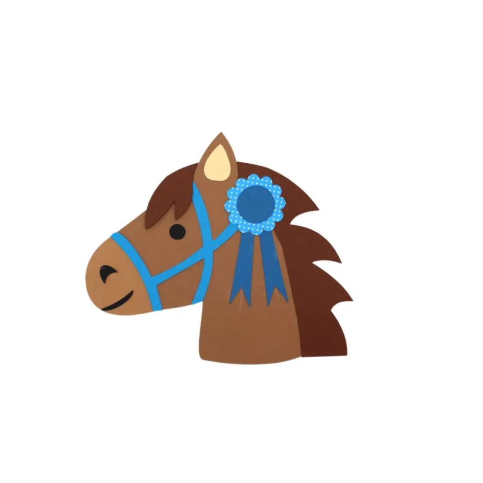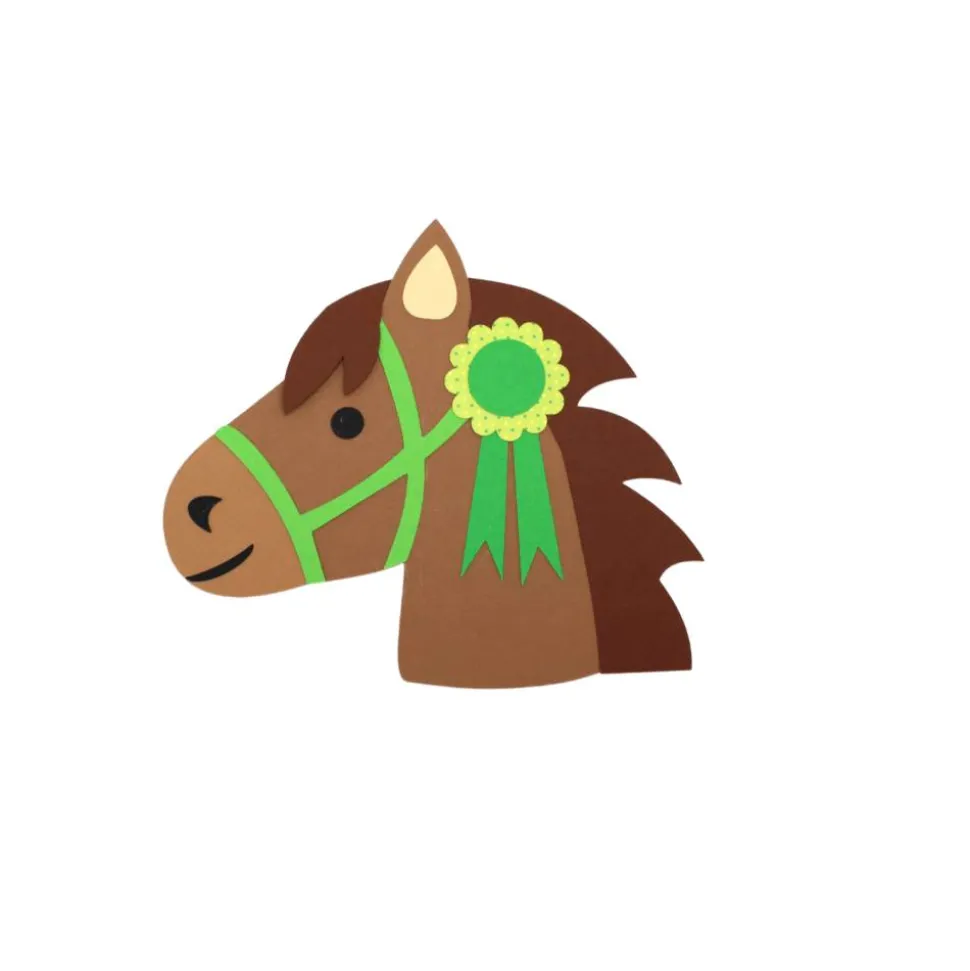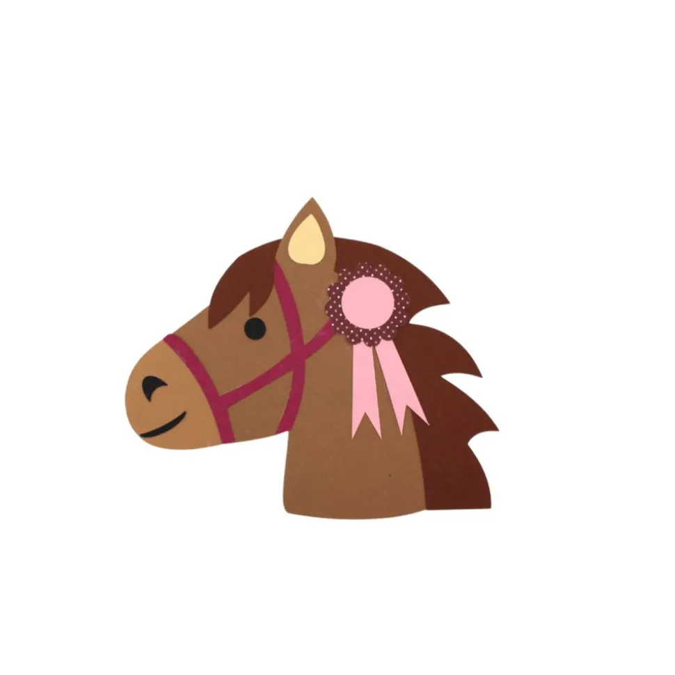 Inhalt der Bastelbox: Einladungskarte Pferd aus Tonkarton, Stanzteile aus Tonkarton, Bastelanleitung