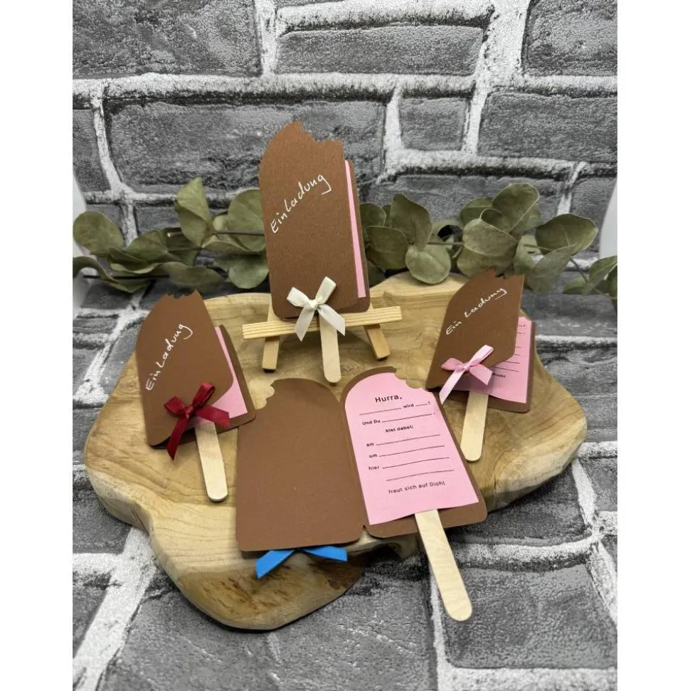 Handgefertigte Einladungskarte zum Kindergeburtstag in Eis form.
