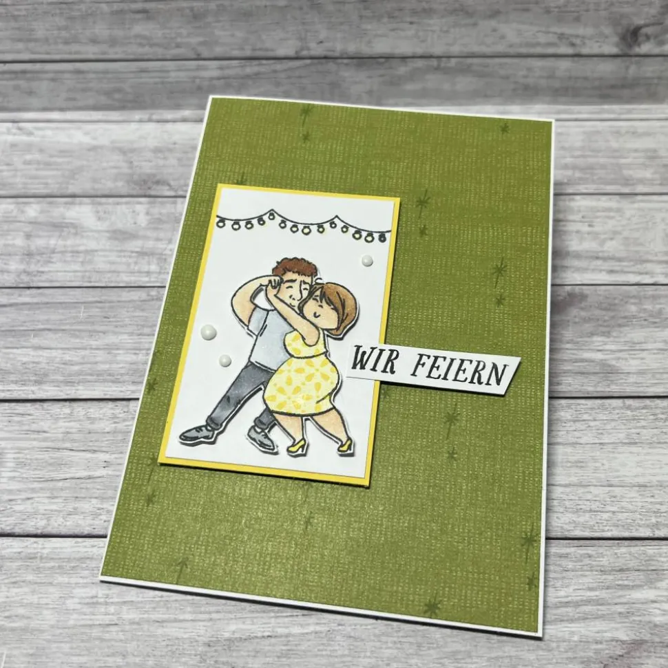 Dann erhältst du hier Einladungskarten, die mit viel Liebe zum Detail, von mir handgefertigt werden. Durch das Motiv und den Spruch „Wir feiern“, sind die Karten für die verschiedensten Anlässe geeignet.