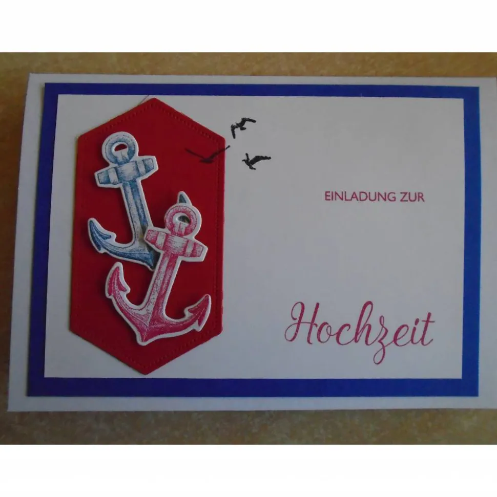 Hier seht ihr eine schöne Einladungskarte zur Hochzeit..eine Maritimhochzeit mit Anker