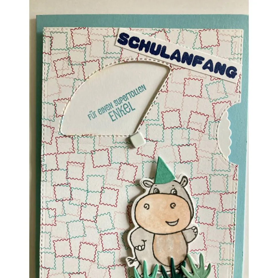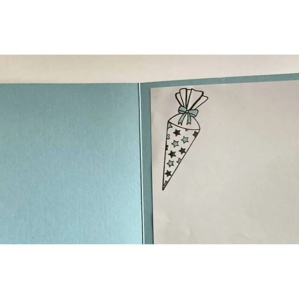 Auf dem Inlett der Karte ist eine Schultüte aufgestempelt. Es ist viel Platz für persönliche Glückwünsche an das neue Schulkind.