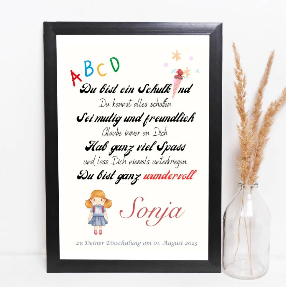 Personalisiert mit Wunschnamen des Schulkindes als Einschulungsgeschenk.
