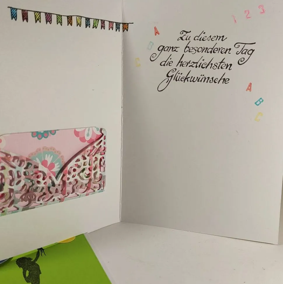Dort können in einem kleinen Fach auf einem Einsteckzettel nochmals liebe Worte und Wünsche eingesteckt werden.