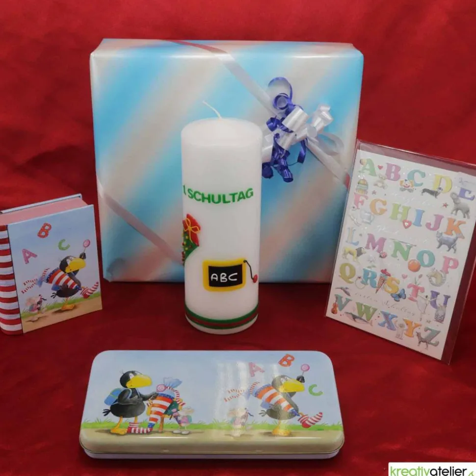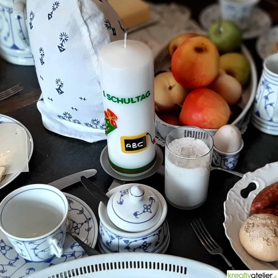 Die Kerze zum Schulanfang kann wie abgebildet personalisiert werden, um sie noch individueller und einzigartiger für Ihr Schulkind zu machen.