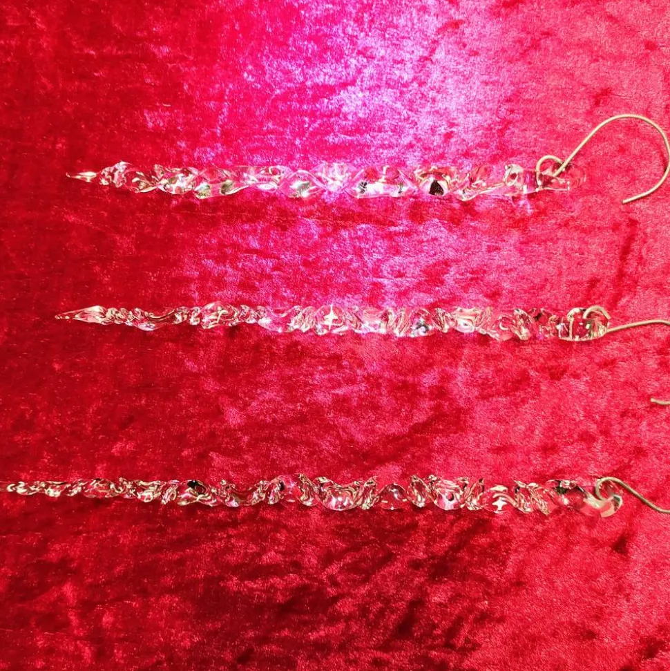 Eiszapfen aus Borosilikatglas in meiner Werkstatt an der Flamme geformt. Als Solitär oder in der Gruppe sammeln sie Lichtstrahlen am Weihnachtsbaum, im Fenster oder freihängend im Garten an einem Ast.