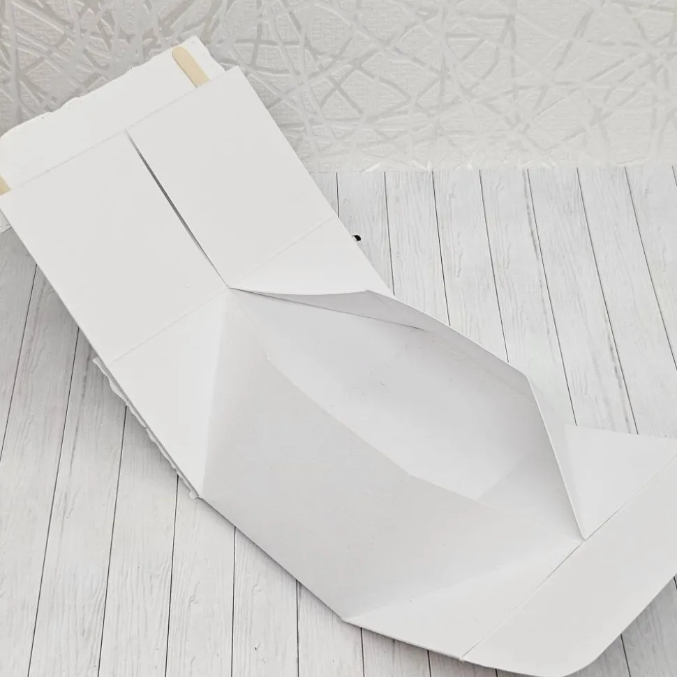Handgefertigt in elegantem Weiß: Jede Box wird von Hand aus hochwertigem, stabilem 300 g/qm Fotokarton in elegantem Weiß gefertigt. Die Box misst ca. 10 cm Breite, 5 cm Höhe und 6 cm Tiefe und eignet sich ideal für exklusive Gutscheine, Schmuck oder kleine, feine Geschenke.
