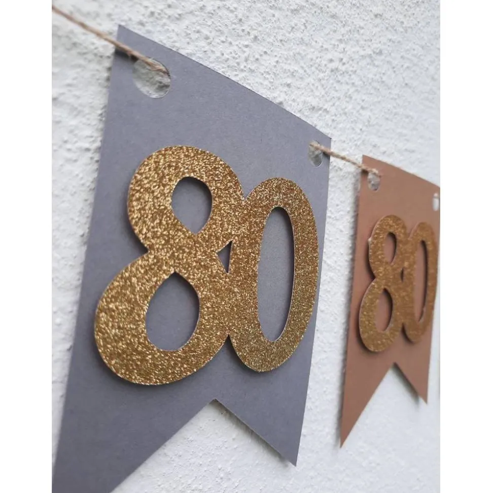 Unsere neue Farbkombination in Beige, Hellgrün und Grau mit goldenen Zahlen bringt eine erfrischende Dekoration für die große Feier.