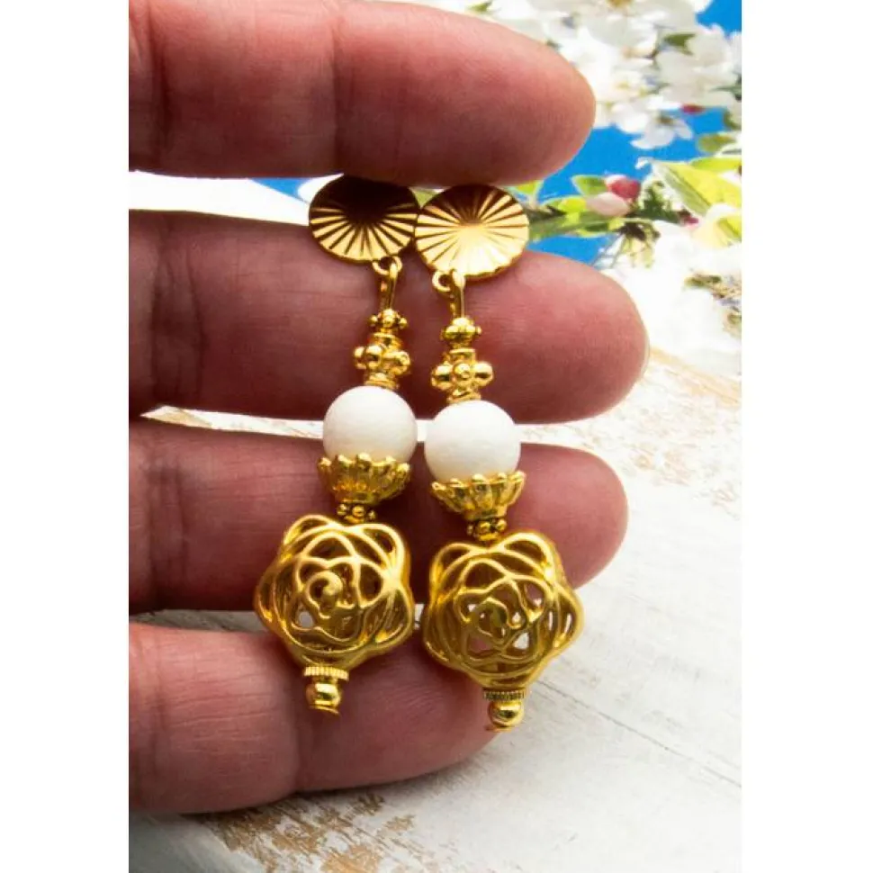 Entdecke einzigartige, handgefertigte Ohrstecker in weiß und goldfarben. Diese individuell gearbeiteten Ohrringe sind das perfekte Geschenk für Freunde, Familie oder für dich selbst. Ihr elegantes Design macht sie zu einem vielseitigen Accessoire für jeden Anlass – ob Geburtstag, Strandspaziergang, Weihnachten oder einfach für den Alltag.