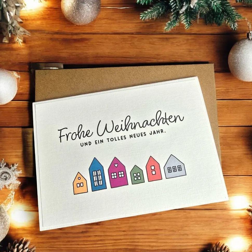 Diese Karte ist die ideale Wahl, um Familie, Freunden oder Kollegen stilvolle Weihnachtsgrüße zu übermitteln – charmant und hochwertig.