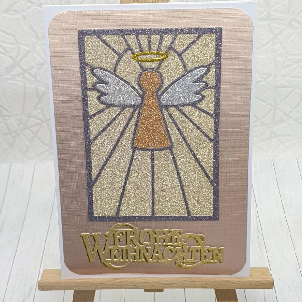 Erlebe eine stilvolle Weihnachtszeit mit der Weihnachtskarte Engelsfenster. Diese elegante Karte im Format A6 besticht durch ihr raffiniertes Motiv, das einem Kirchenfenster mit einem Engel nachempfunden ist. Die Kombination aus Metall- und Glitzereffektpapier sorgt für einen festlichen Blickfang.
