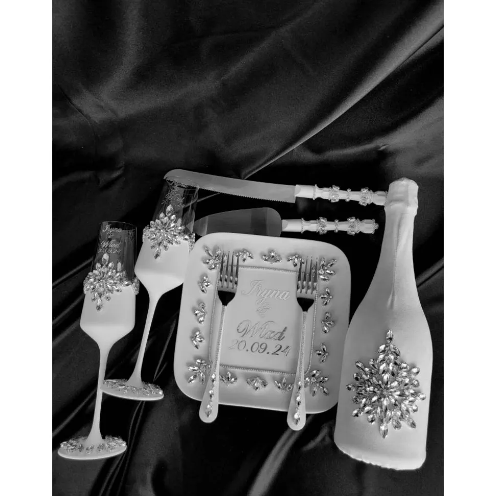 | Style | 2 Gläser, Flaschenüberzug, Kartenbox, Ringbox, Ringbox personalisiert, Teller+2 Gabeln, Tortenmesser+Tortenheber |