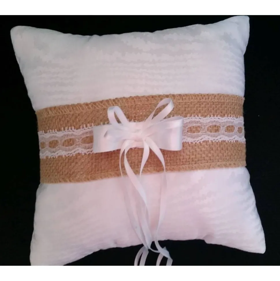 Ringkissen aus Satin mit Juteband und Spitzenborte