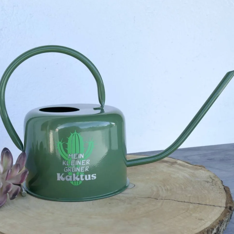 Die Gießkanne fasst ca 900 ml und überzeugt durch ihren extra langen Ausgießer – ideal zum präzisen Gießen von Kakteen, Zimmerpflanzen oder empfindlichen Blumen. Der aufgebrachte Text besteht aus einer permanent haftenden, feuchtigkeitsresistenten Folie. Auf der Vorderseite der Kaktus mit Text, auf der Rückseite ein kleiner Kaktus, ca 3 x 3,5 cm. Die Beschriftung ist weder gelasert, bedruckt noch graviert, sondern sorgfältig angebracht für besondere Langlebigkeit.