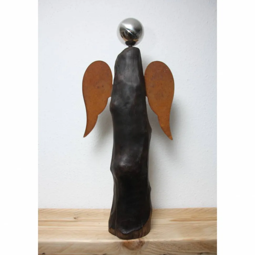 Rostige Flügel und Edelstahlkugel machen diesen Engel zum echten Hingucker.