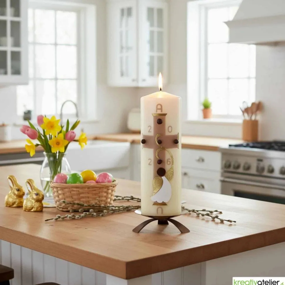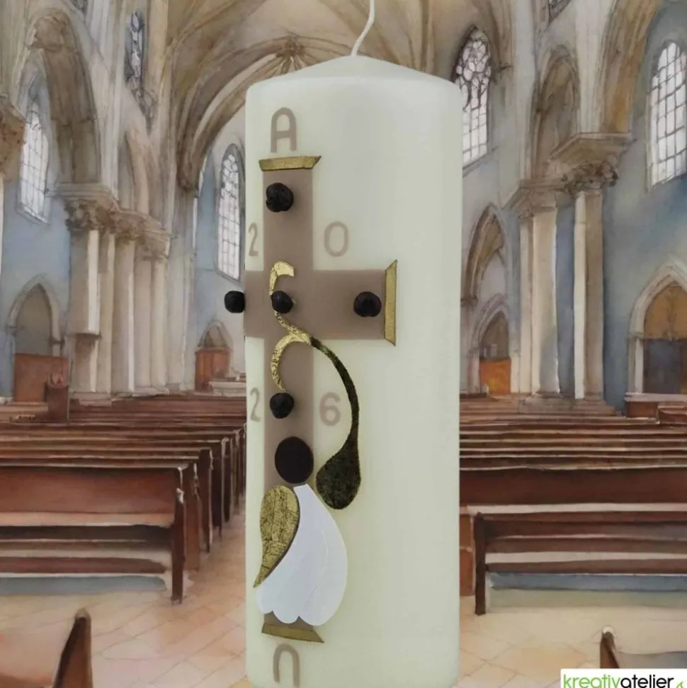 Die aktuelle Jahreszahl ist fester Bestandteil der Osterkerze.